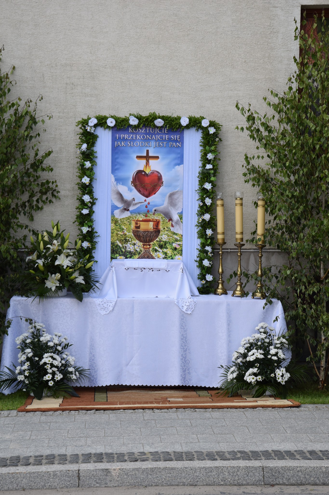 Jedenaście dni po Zielonych Świątkach, czyli Niedzieli Zesłania Ducha Świętego, w Kościele katolickim obchodzi się uroczystość Ciała i Krwi Chrystusa, potocznie zwaną Bożym Ciałem. Podczas tego święta, po głównej mszy świętej, odbywa się, przy udziale całej parafii, uroczysta procesja z Najświętszym Sakramentem do czterech ołtarzy, zbudowanych przez wiernych. Święto zostało ustanowione 11 sierpnia 1264 r. przez papieża Urbana IV, a zatwierdzone w 1314 r. przez Klemensa V, który nadał mu tym samym przywilejem nazwę. W Polsce po raz pierwszy obchodzono je w Diecezji Krakowskiej w 1320 r.. Święto jest głęboko przeżywane przez ludność rolniczą. Obchodzi się je przez osiem dni, czyli przez tzw. oktawę (uoktoby), ranną mszą i wieczornymi nieszporami. (…) Zakończeniem obchodów Bożego Ciała są uroczyste nieszpory z procesją w ostatni dzień oktawy.