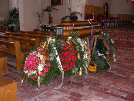 Trumna z ciałem ks. prałata Władysława Taraska wystawiona w kościele w Dobrej - 23 III 2008 r. Fot. S. Rząsa