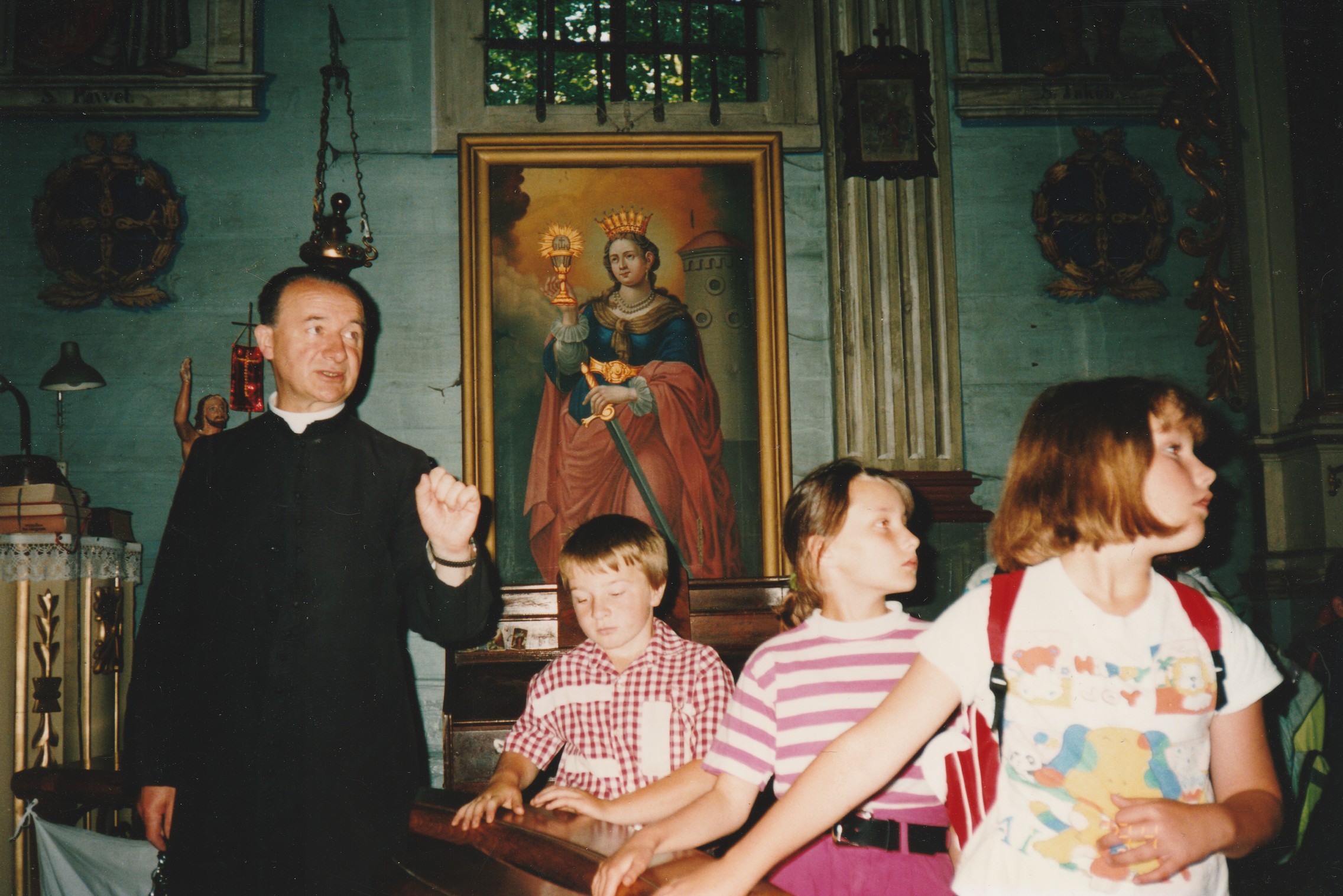 Ks. Władysław Tarasek zawsze wykazywał ogromną troskę o dzieci i młodzież. Podczas katechez często zabierał je do zabytkowego, ukochanego, dobrzańskiego zabytkowego kościoła pw. św. Szymona i Judy Tadeusza , pokazując jego piękno i tłumacząc historię. Źródło: Archiwum Parafii Dobra.