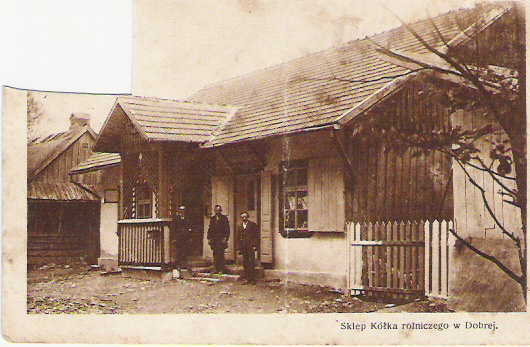 Sklep Kółka rolniczego w Dobrej. Obecnie w tym miejscu znajduje się budynek zarządu GS.