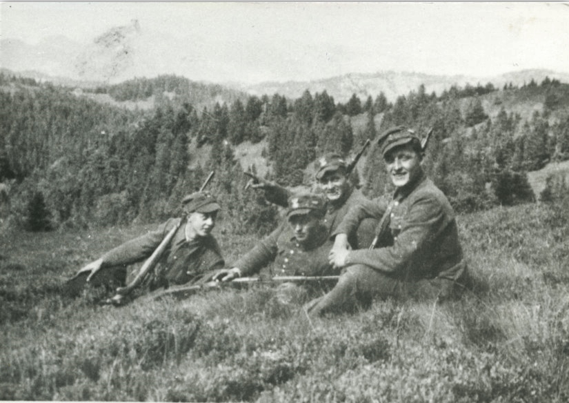 Oddział Partyzancki "Wilk". Julian Tomecki pierwszy z lewej. Zdjęcie ze zbiorów Muzeum Armii Krajowej w Krakowie, pobrane ze strony: http://skansen-studzionki.pl/1751-2/