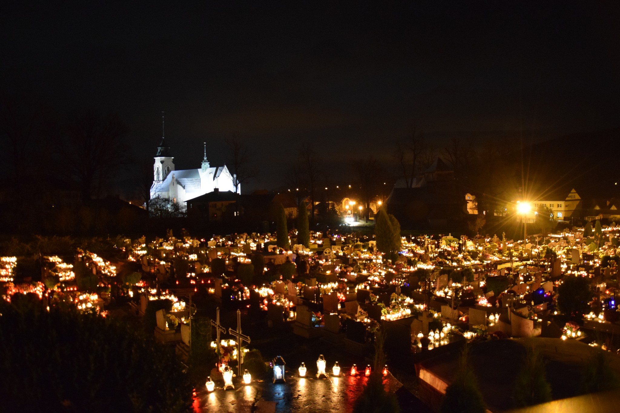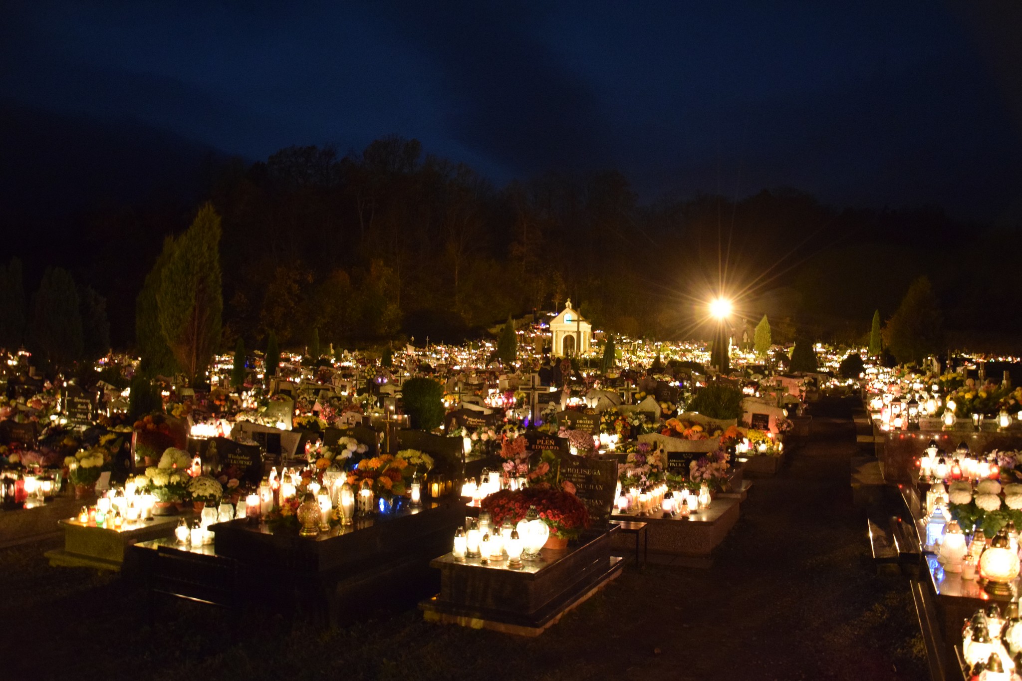 Cmentarz w Dobrej, wieczorem 1 XI 2017 r. Fot. A. Cieślik